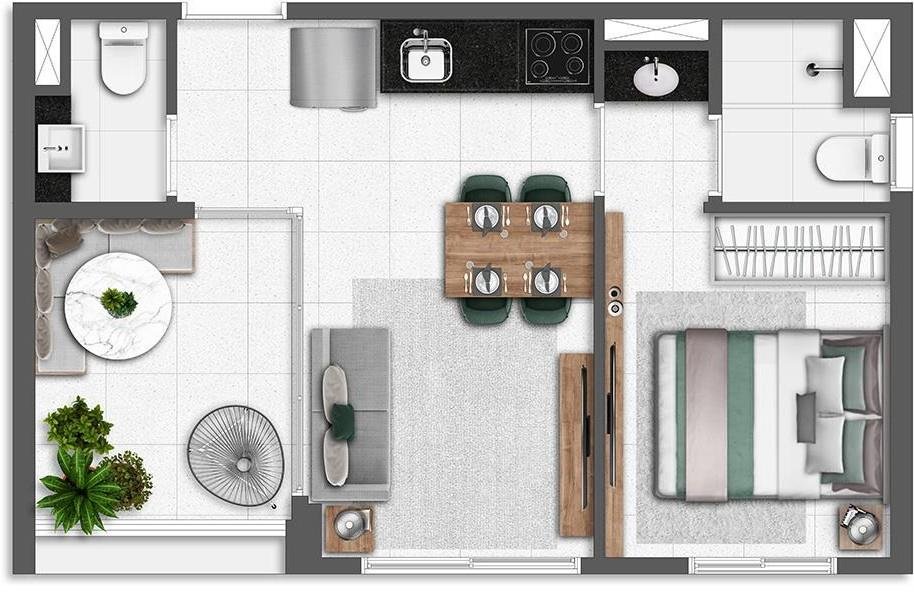 - Dormitórios1 Suítes1 Banheiros1 Garagens1