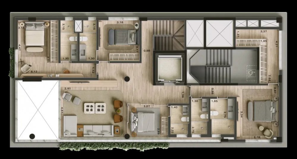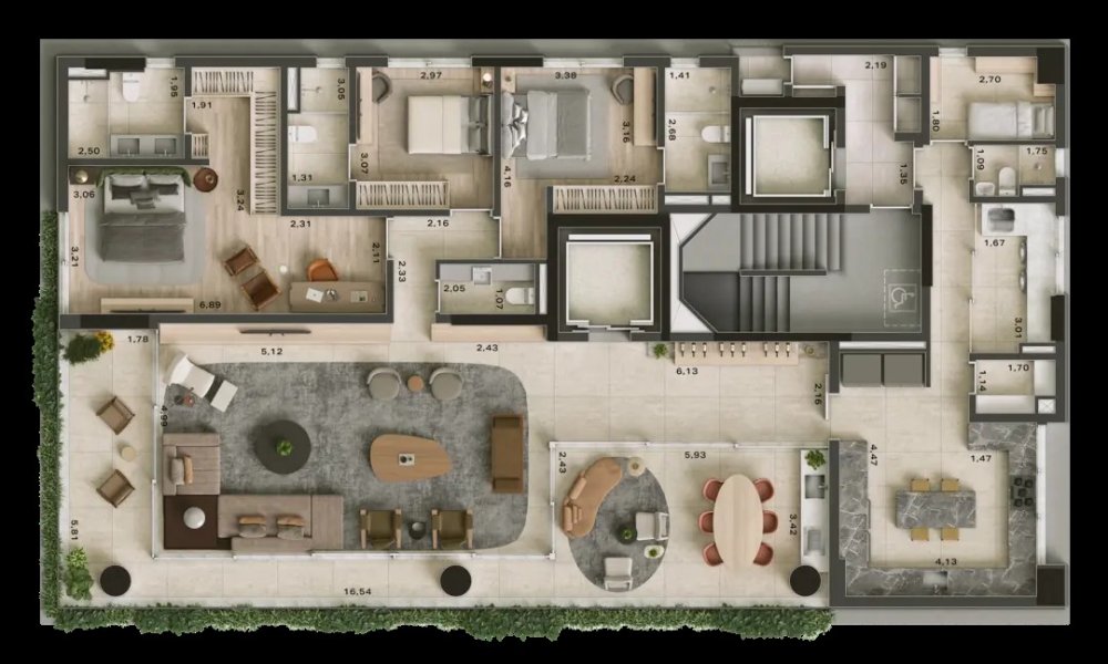 O empreendimento apresenta 13 unidades tipo, cada uma ocupando um andar exclusivo, com 3 suítes e 3 vagas de estacionamento, oferecendo uma deslumbrante vista para os jardins. Além disso, há uma unidade duplex e outra triplex na cobertura, reforçando a privacidade e elevando o requinte a um novo patamar na localização mais cobiçada de São Paulo.