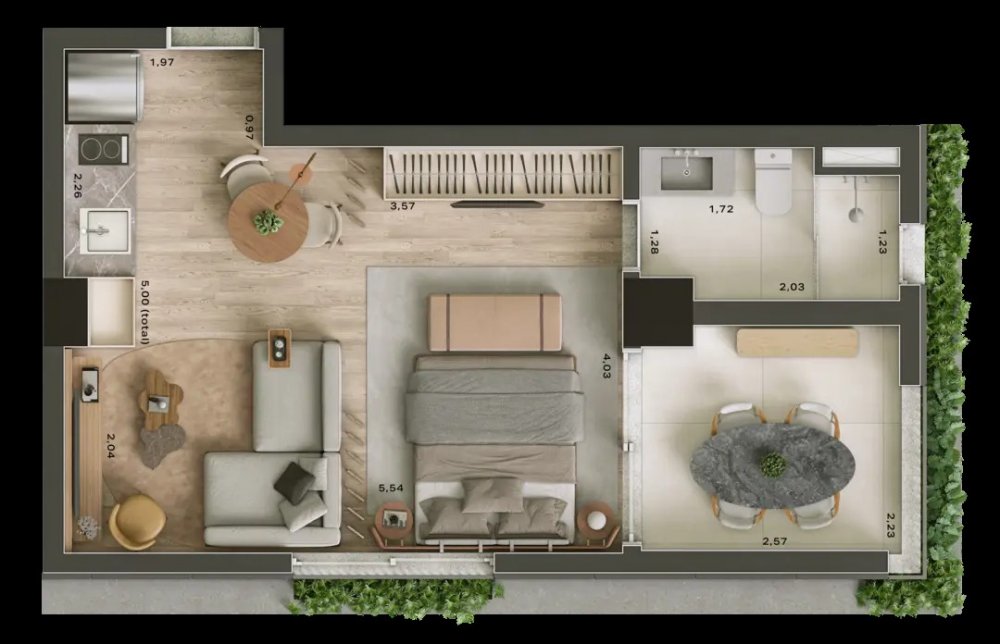 • Acesso das lojas e studios completamente independentes do residencial;