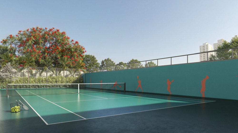 - Áreas comuns elegantes que comportam quadra de tênis e piscinas