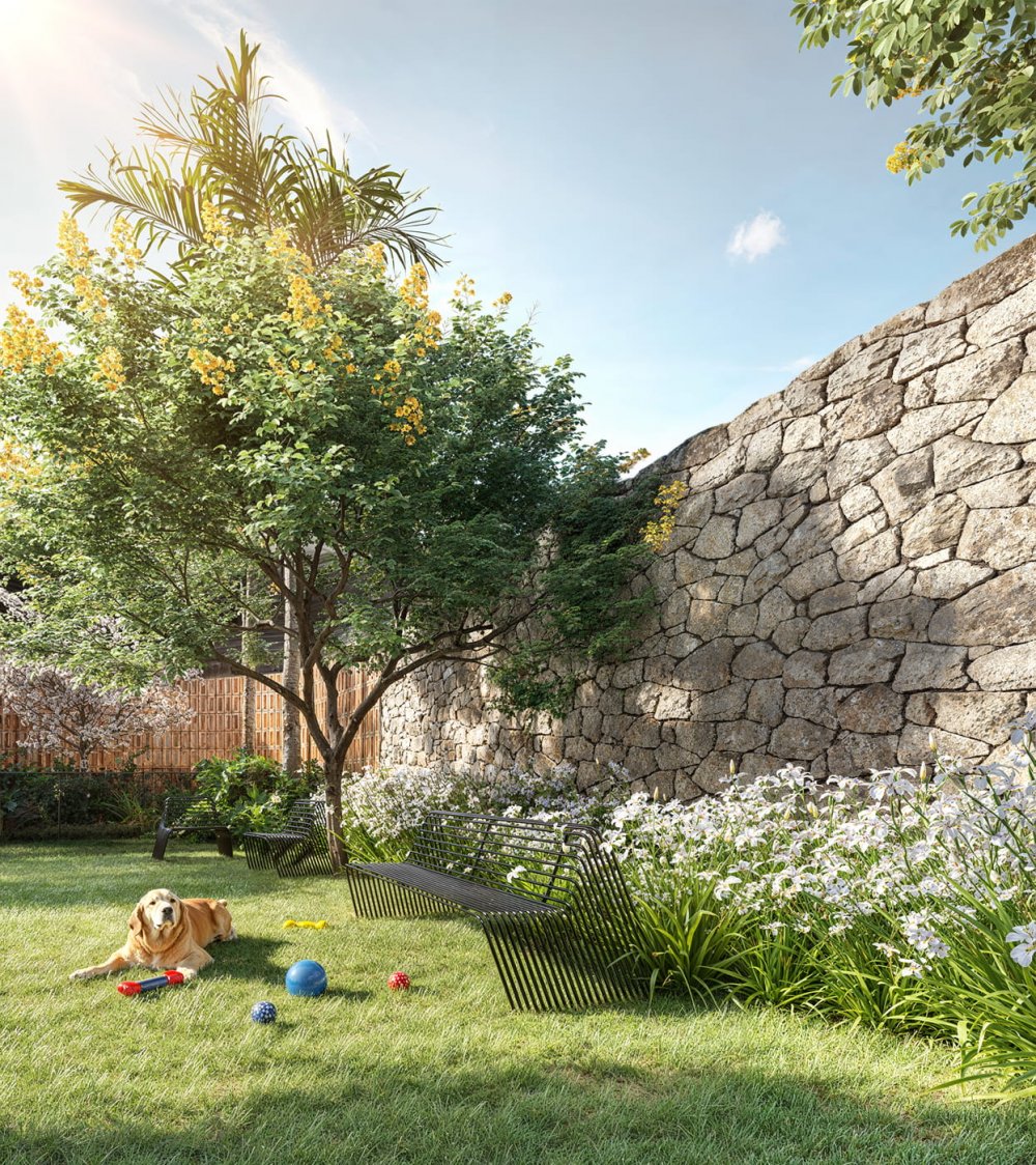 Inspirando-se na serenidade do campo e nas memórias de casas acolhedoras com varandas generosas, a atmosfera deste empreendimento reflete o aconchego característico da vida campestre, uma marca registrada do nosso escritório.