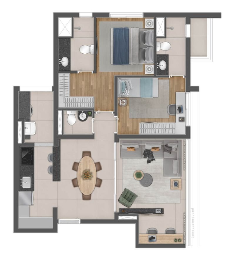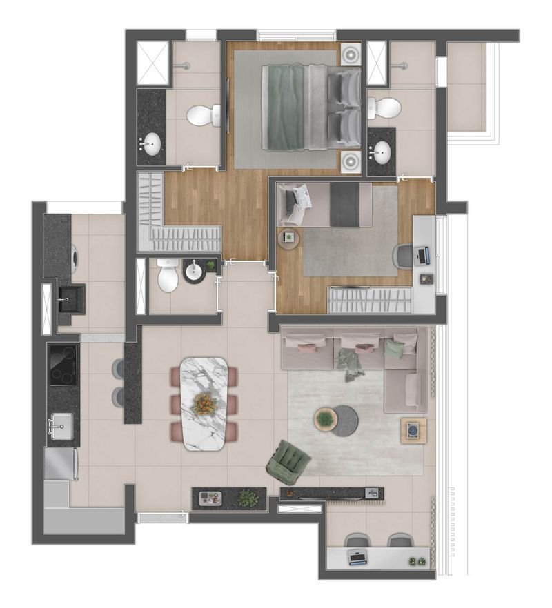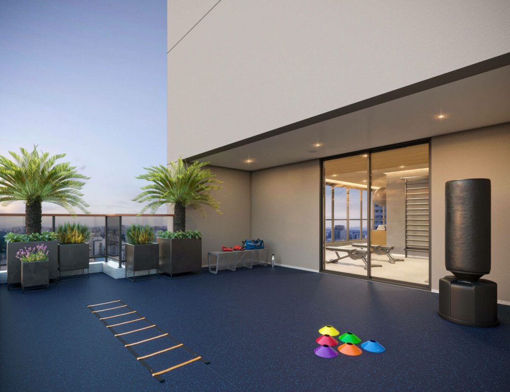 Quadra Beach Tennis - Churrasqueira - Fitness Externo - Fitness - Festas Gourmet - Lounge Festas - Pet Place - Piscina - Playground - Brinquedoteca - Bicicletário - Delivery - Lobby