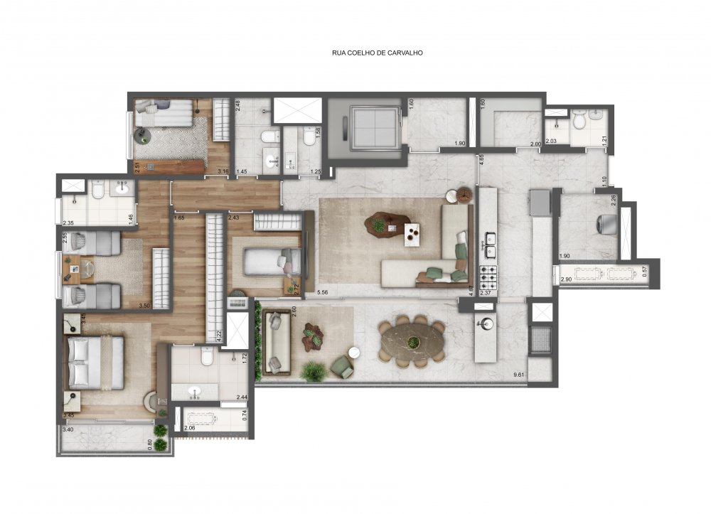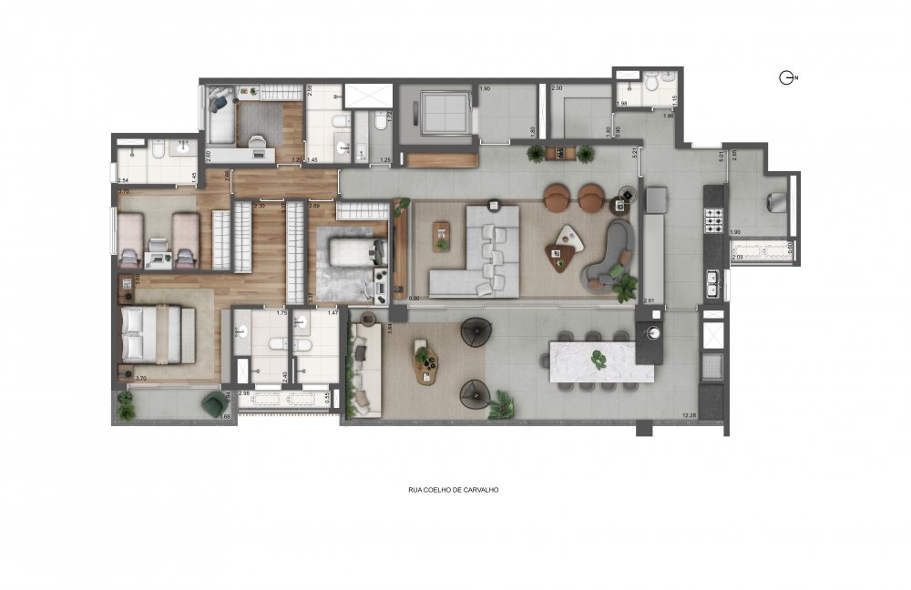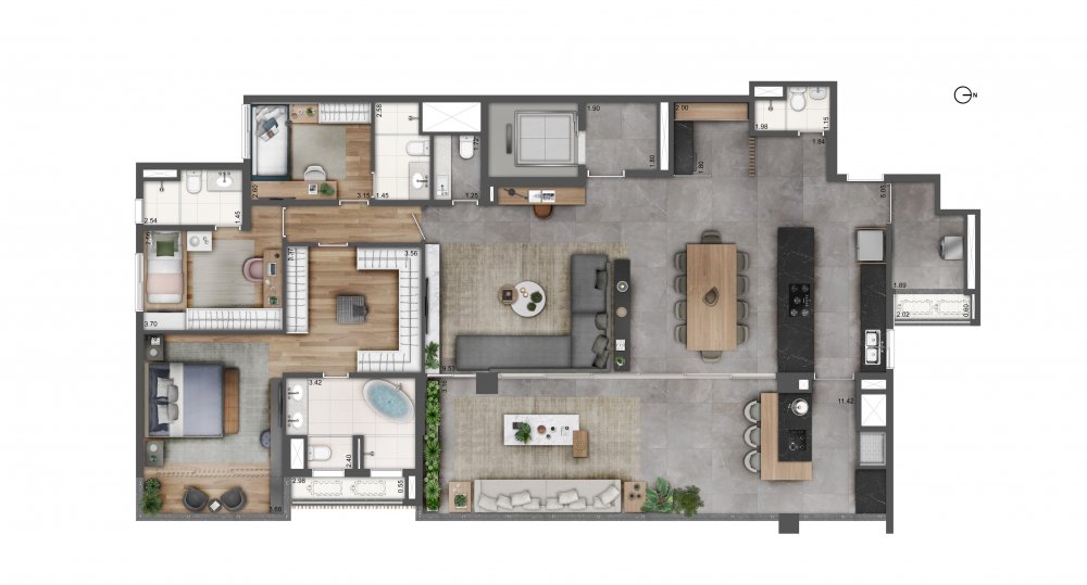 Planta Tipo | 4 suítes - 232,38m²*