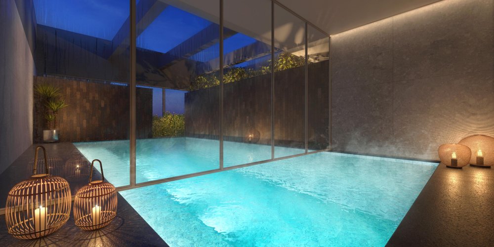 Sauna úmida com piscina descoberta integrada