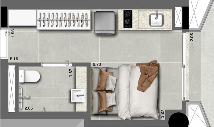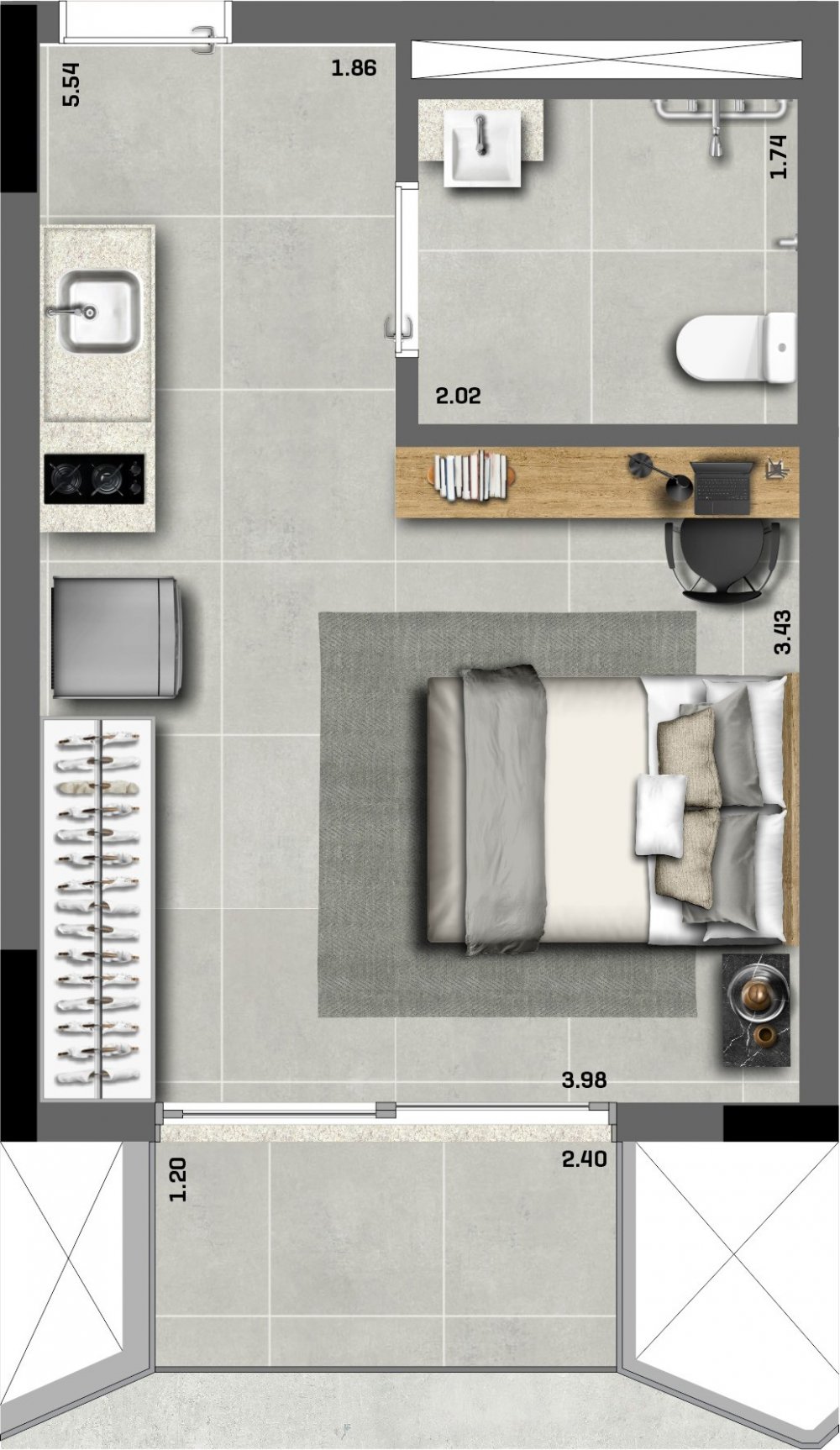 As unidades variam de 42m² a 101m², atendendo às diferentes necessidades e estilos de vida. Seja você um amante da praticidade de um quarto ou das comodidades de dois dormitórios, temos o espaço ideal para você. Além disso, todas as unidades contam com pelo menos uma vaga de estacionamento.