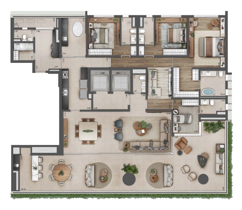 Deixe o horizonte inspirar seus dias. Situado em um dos pontos mais altos de São Paulo, o projeto proporciona uma vista espetacular a partir dos primeiros andares. Plantas generosas ampliam a sensação de viver bem, reforçando o conceito de casa e a experiência de estar em família com sofisticação e conforto.