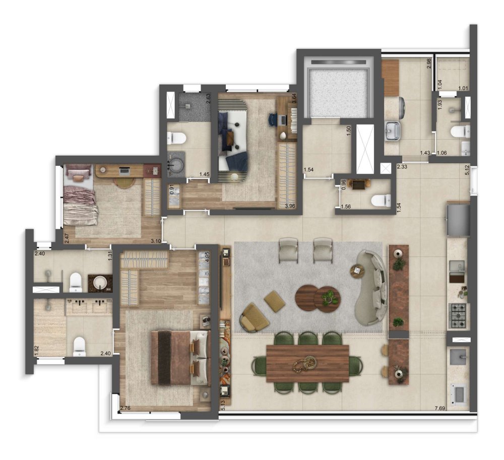 Um refúgio de luxo espaçoso e com acabamento refinados, projetado cuidadosamente para refletir elegância e bem-estar.