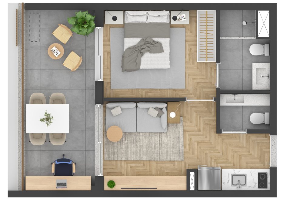 - Área Privativa: 42,78 m²