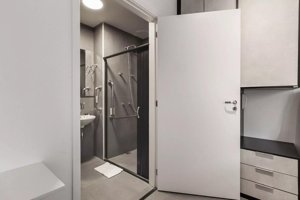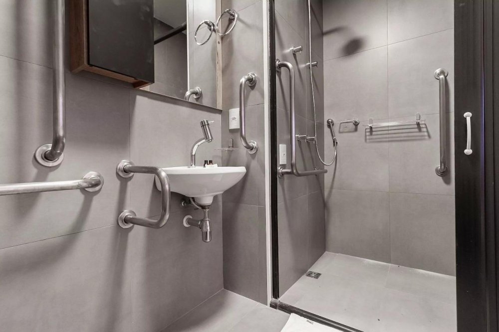 Portas mais largas, barras de apoio estrategicamente instaladas, bancadas rebaixadas e circulação facilitada - inclusivo desde o primeiro dia.