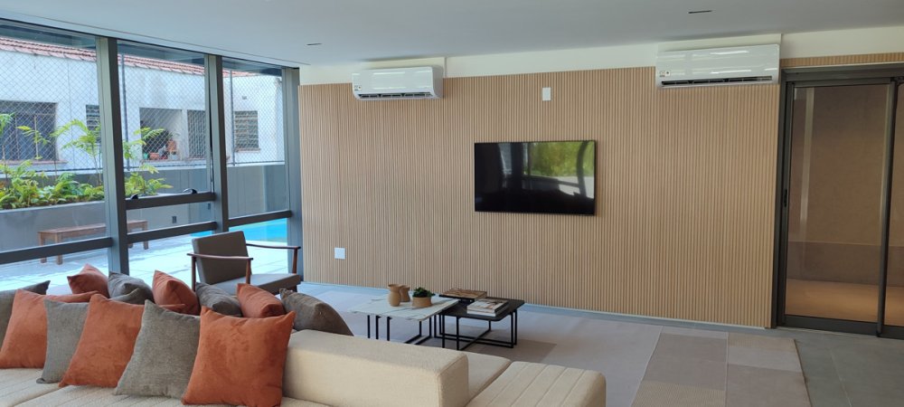 Áreas comuns entregues com ar-condicionado instalado (Salão de Festas, Academia, Brinquedoteca, Salão de Jogos e Portaria).
