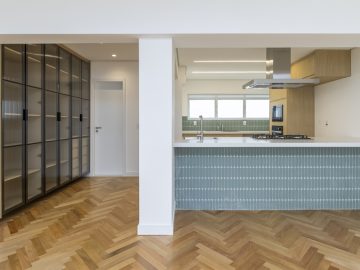 Na reconfiguração realizada, em parceria com o Arq Vinicius Alves, foi criada 2 suítes (uma master) e integrado por completo a cozinha com a sala. Da planta original, foi mantido o simpático escritório agregado à sala, porém distante da área íntima e de serviço da casa.