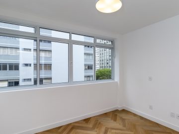 Unidade reformada, já possuía em seu formato original, uma ótima planta onde todos os quartos e a sala têm vista livre e são espaçosos.