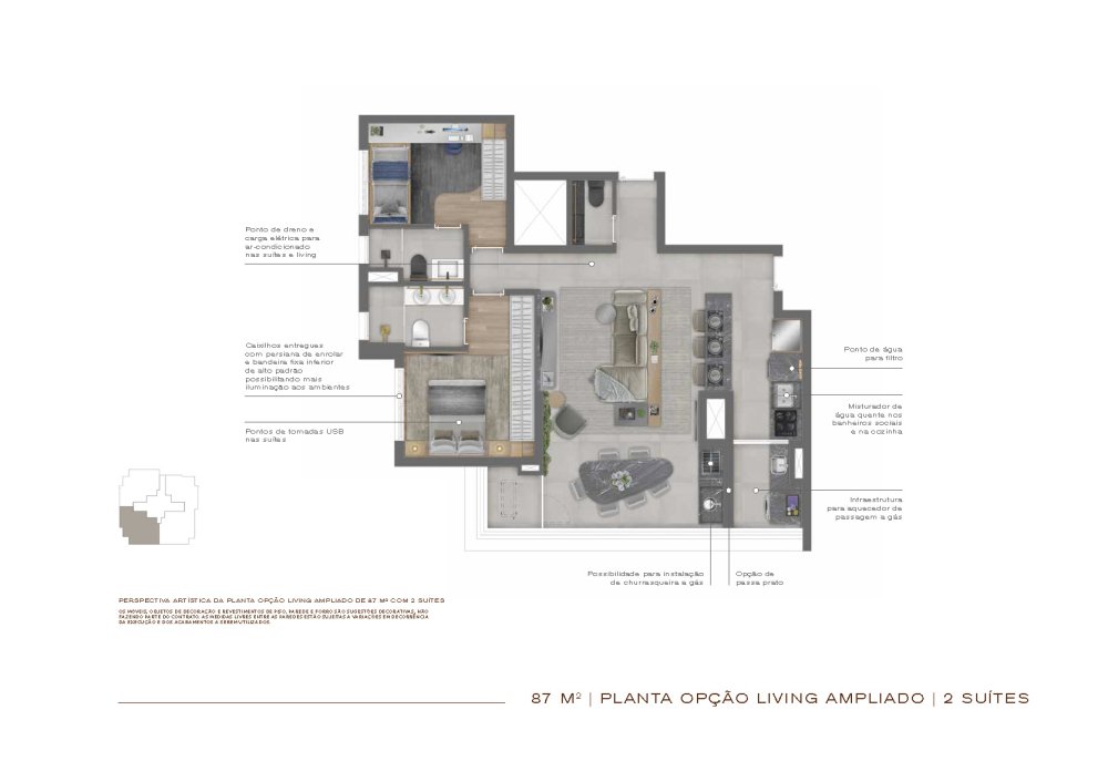 - Área Privativa: 87,32 m²