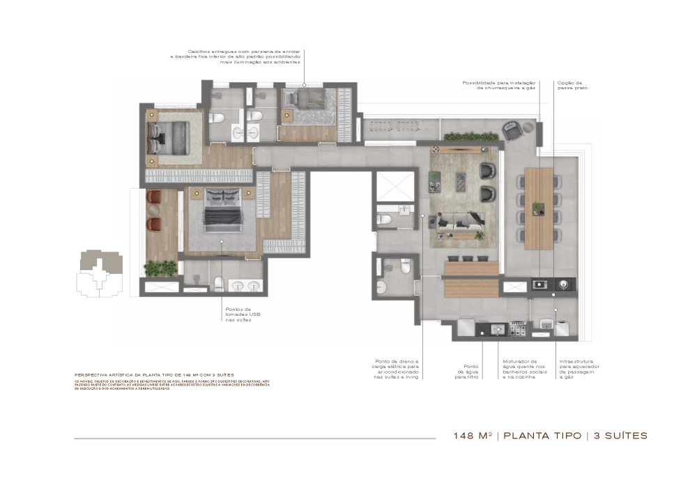 7 unidades de 148m² (3 suítes e 2 varandas)