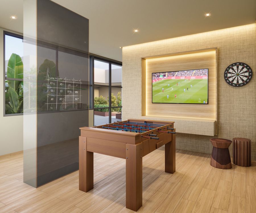 Lazer: Lobby com Pé-Direito Duplo, Salão de Festas, Spa com Sauna, Fitness, Coworking, Brinquedoteca, Salão de Jogos, Home Cinema, Churrasqueira Coberta, Relax Space, Playground, Fire Place Lounge, Estar com Espelho d'Água, Piscina Adulto com Deck Molhado, Solarium, Piscina Infantil, Mini Market, Sala para Delivery e Bicicletário.