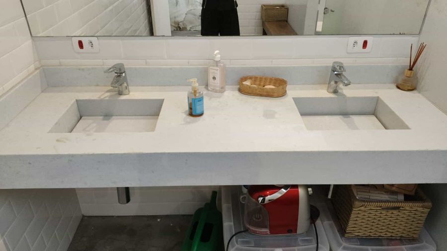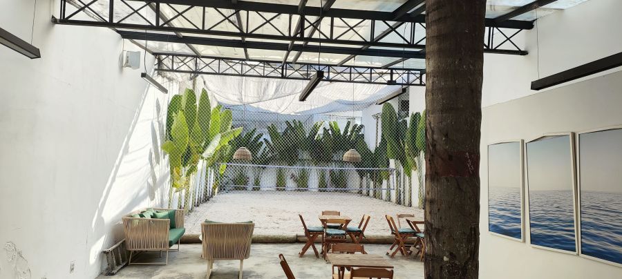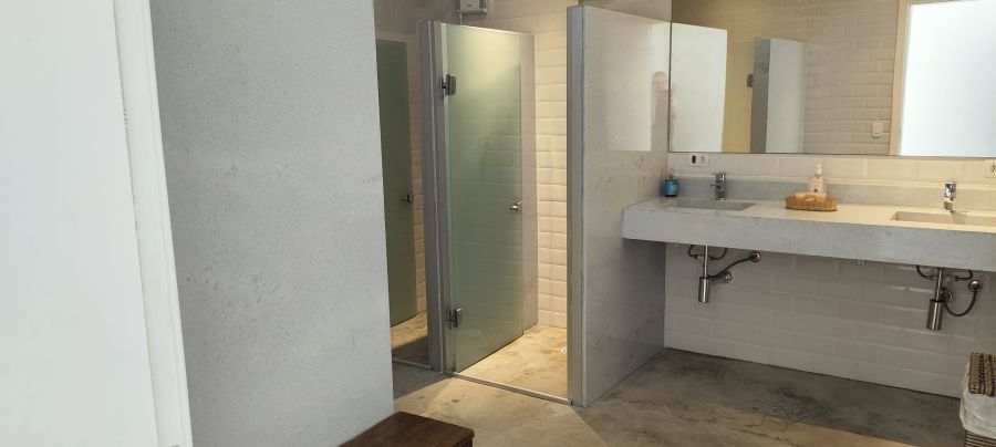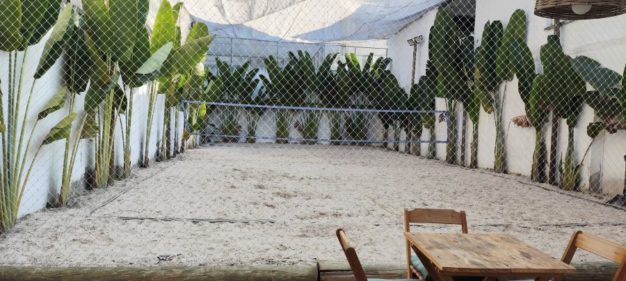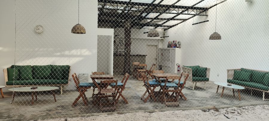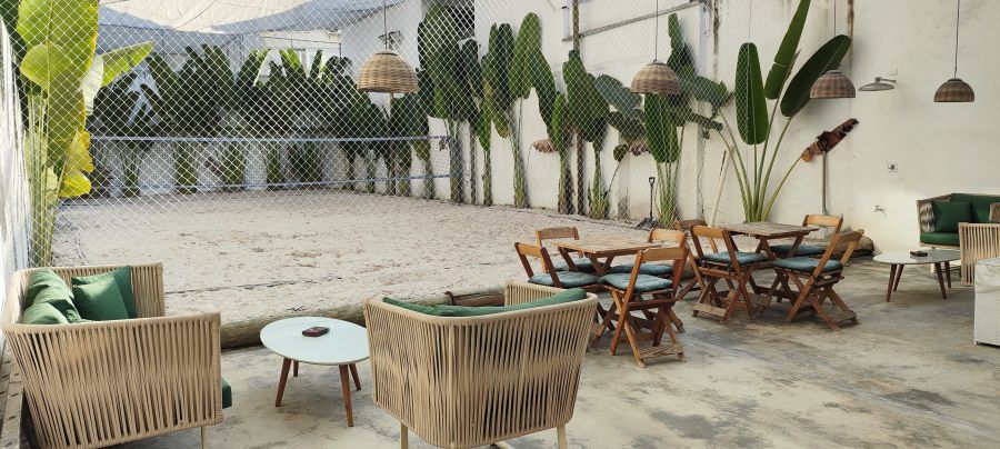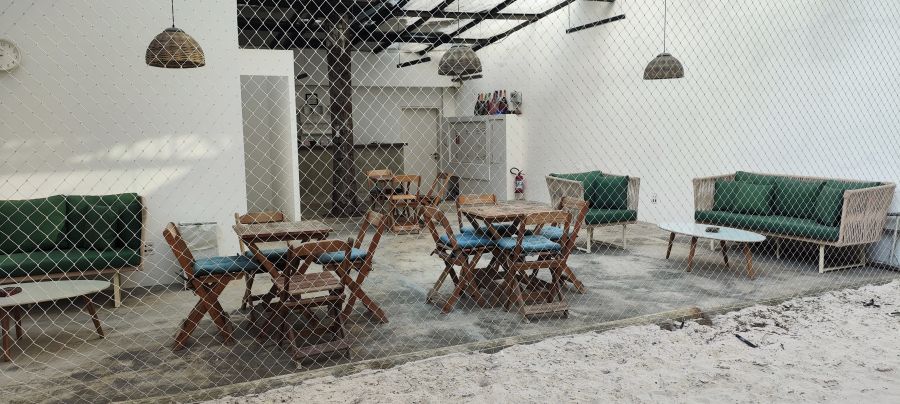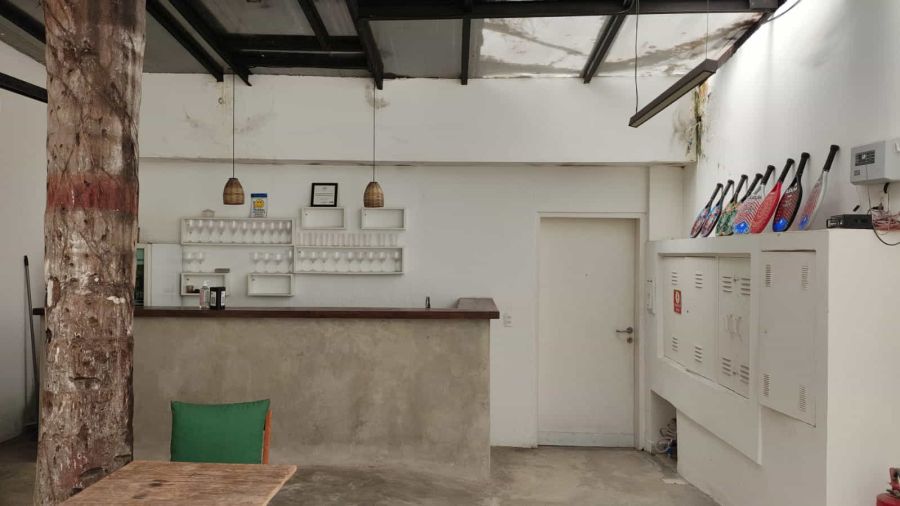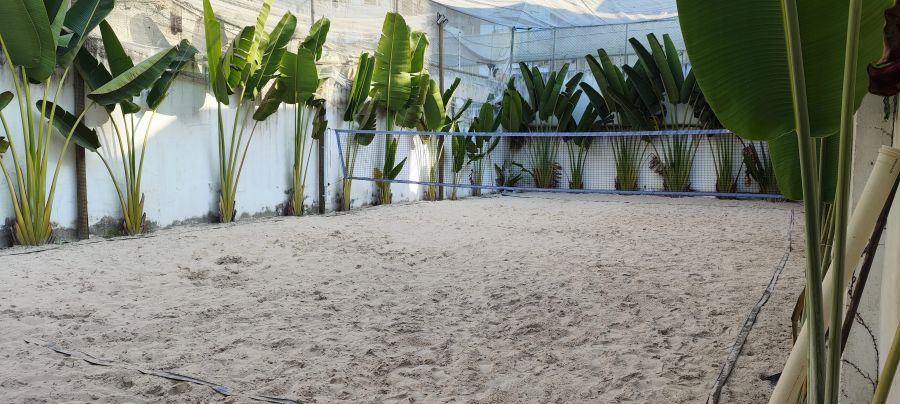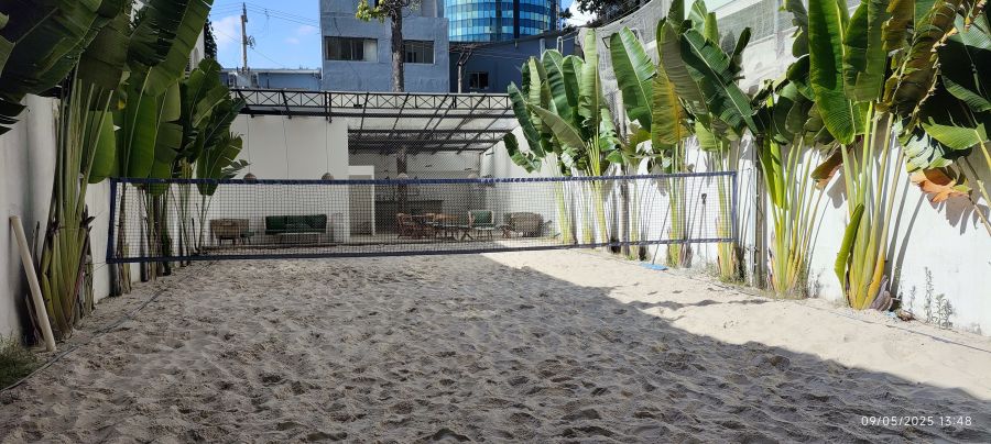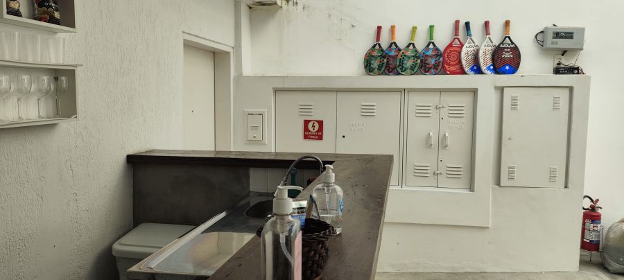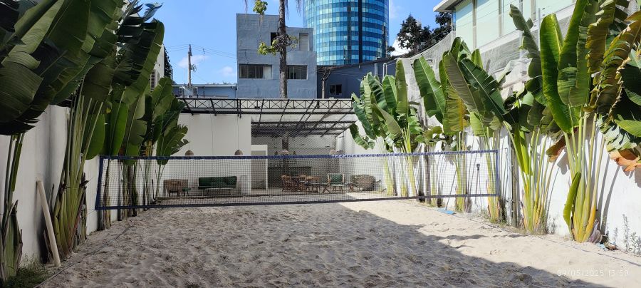 Estrutura existente: 01 quadra de Beach Tennis desativada, incluindo área social e dois vestiários completos, equipados com bancadas, pias, vasos e chuveiros.
