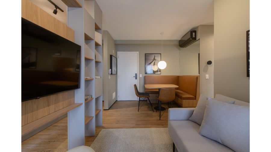 Áreas comuns entregues equipadas e decoradas, com ar-condicionado instalado e forro acústico