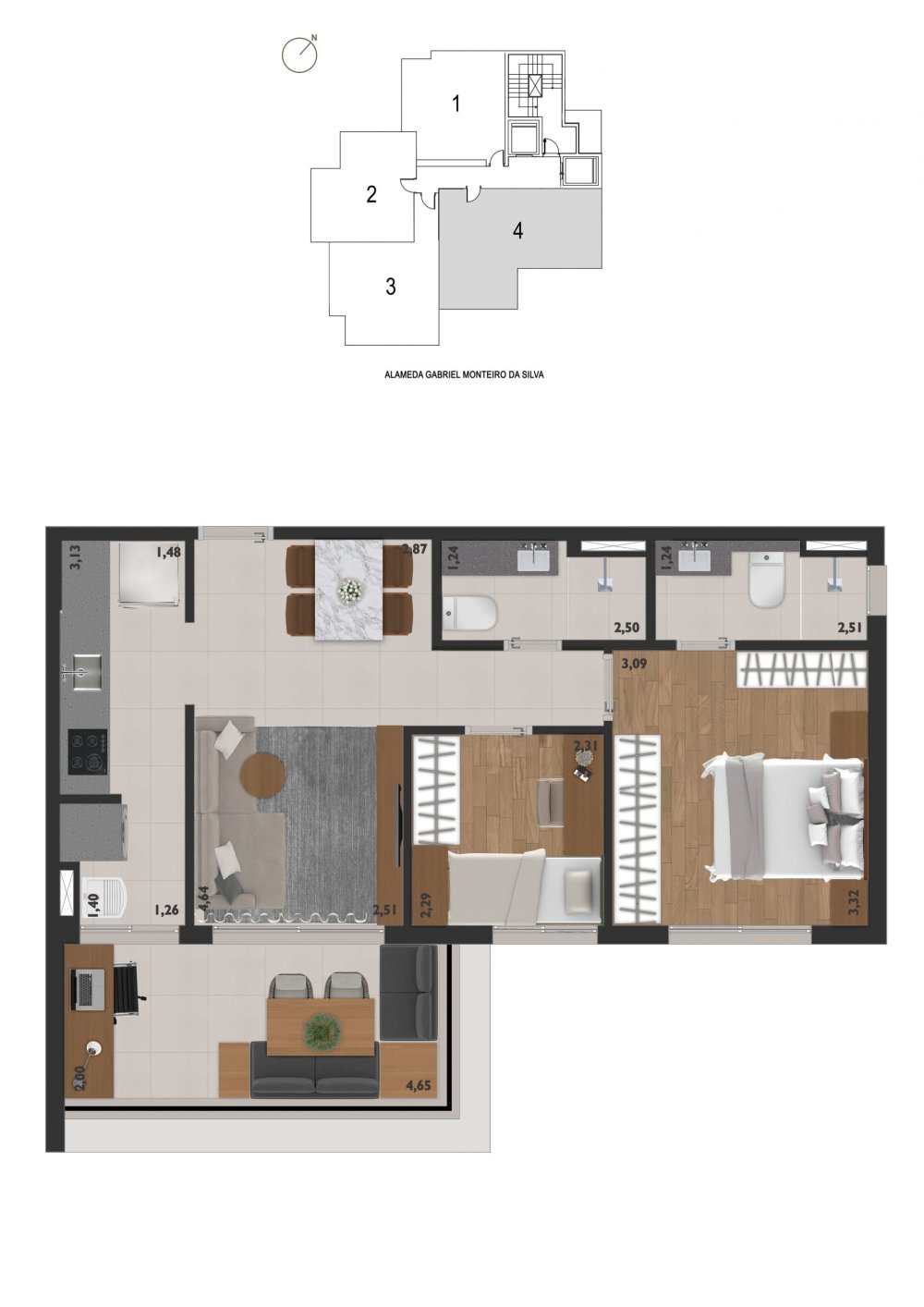 *Apartamentos de 1 dormitório: só terão direito à vaga as tipologias de final 3 do 10º ao 14º pavimento e todas as unidades de 2 dormitórios.