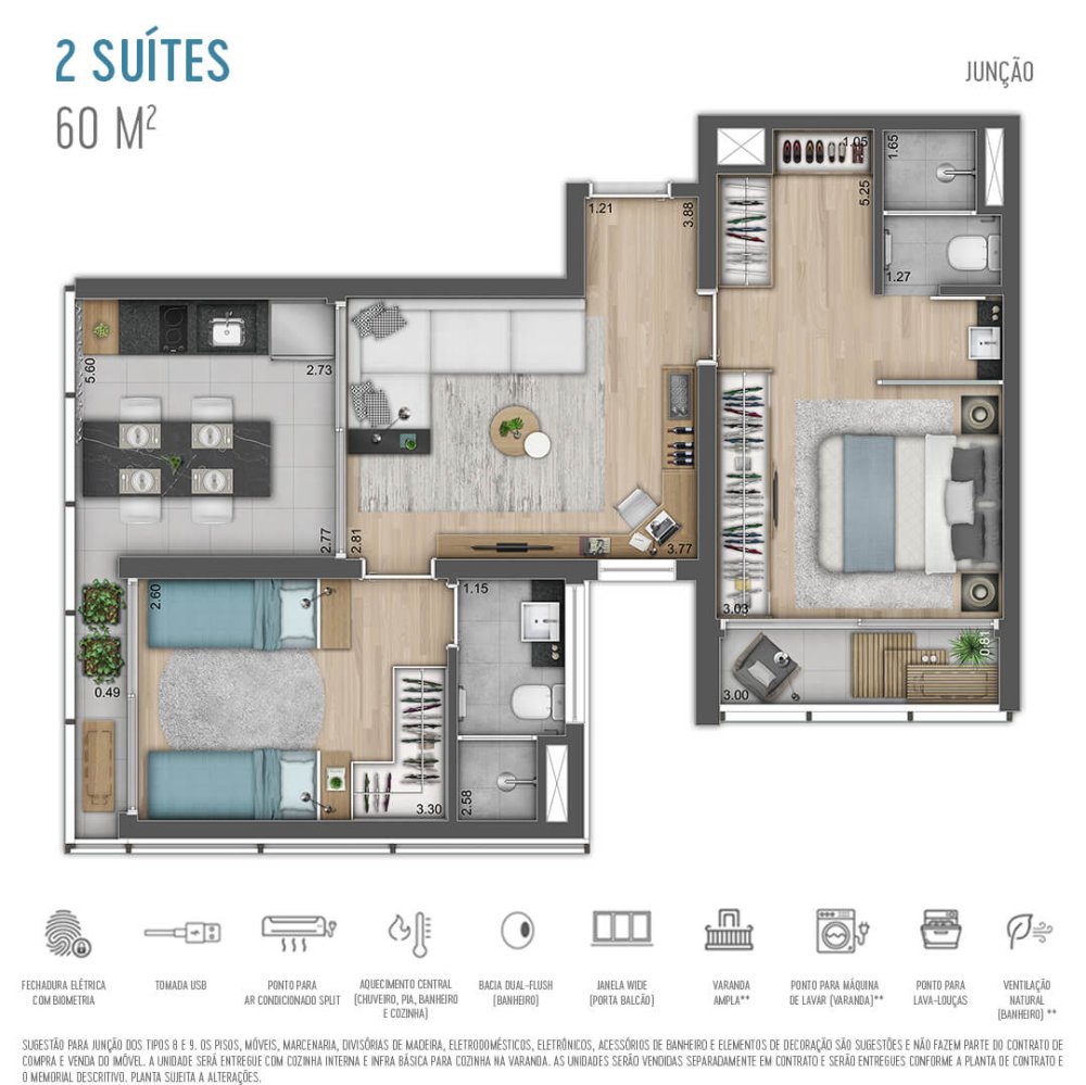 Opções de 2 suítes de 60m² com 1 vaga