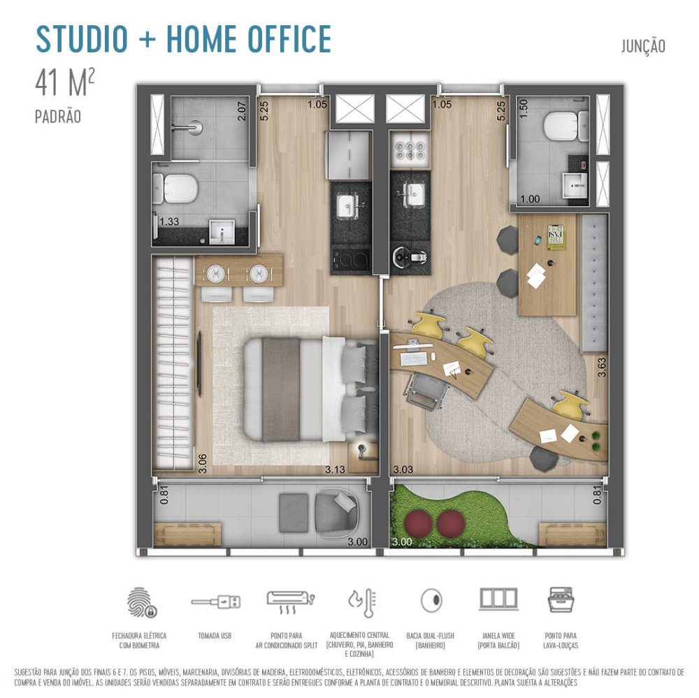 Opções de Studio/1dorm com Home Office