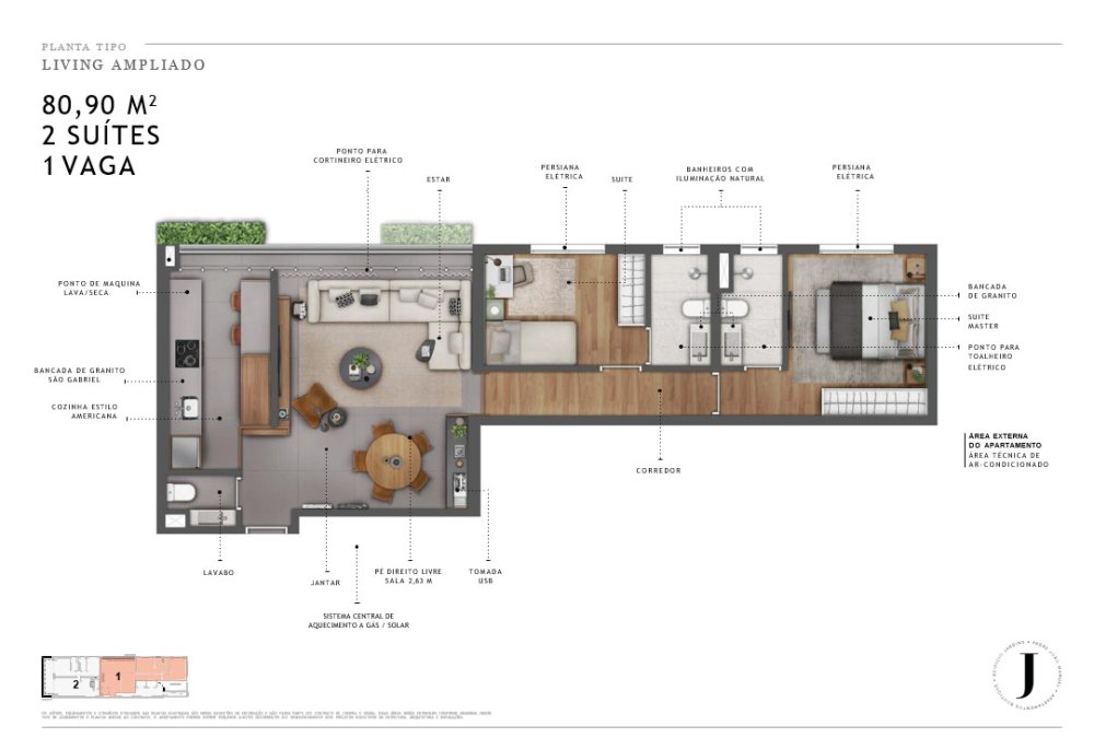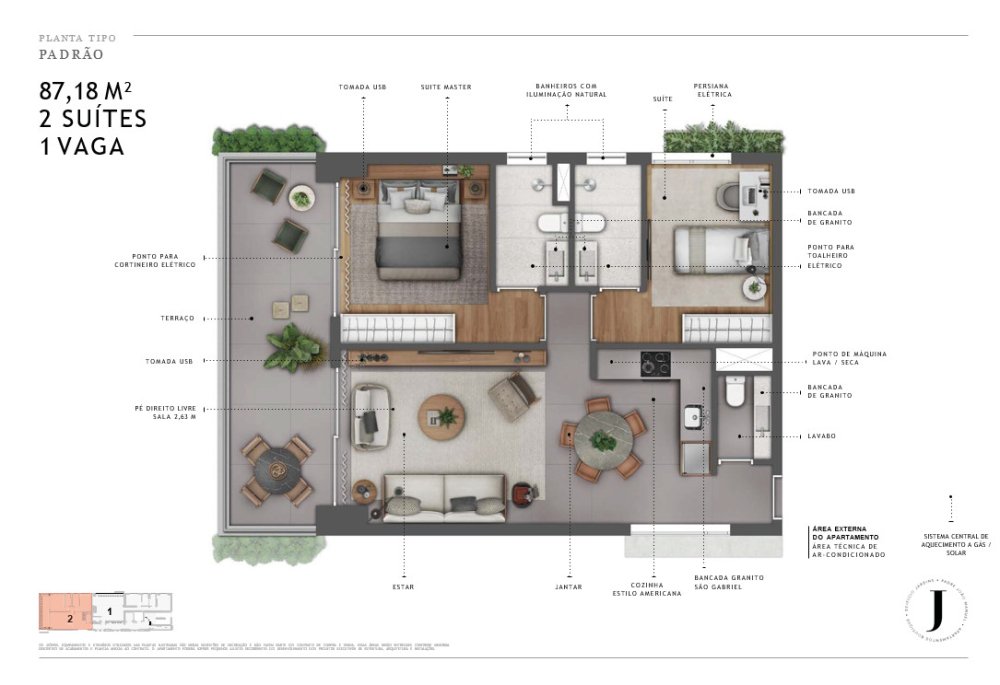 - Área Privativa: 87,20 m²