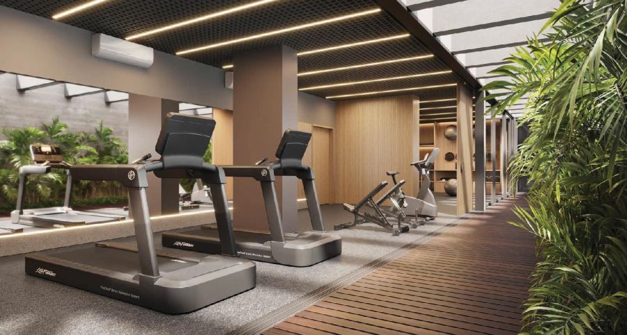 PISCINA COBERTA CLIMATIZADA COM ACESSO AMPLO AO JARDIM, ESPAÇO DE EVENTOS COM COZINHA EQUIPADA E PÉ-DIREITO DUPLO INTEGRADO A ÁREA EXTERNA, FITNESS CLIMATIZADO, SALA FUNCIONAL, ÁREA KIDS EXTERNA, LAVANDERIA E DELIVERY