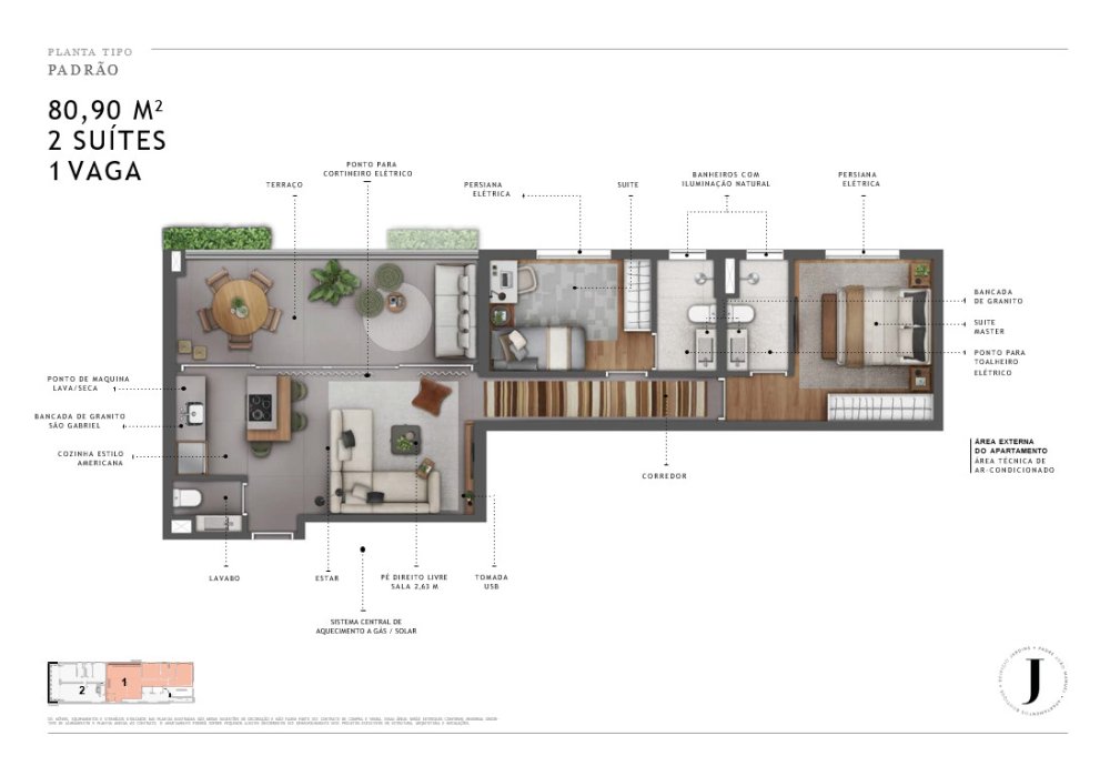 VISTA RUA PADRE JOÃO MANUEL: 87,18m² - 2 SUÍTES - 1 VAGA VISTA ALAMEDA JAÚ: 80,90m² - 2 SUÍTES - 1 VAGA