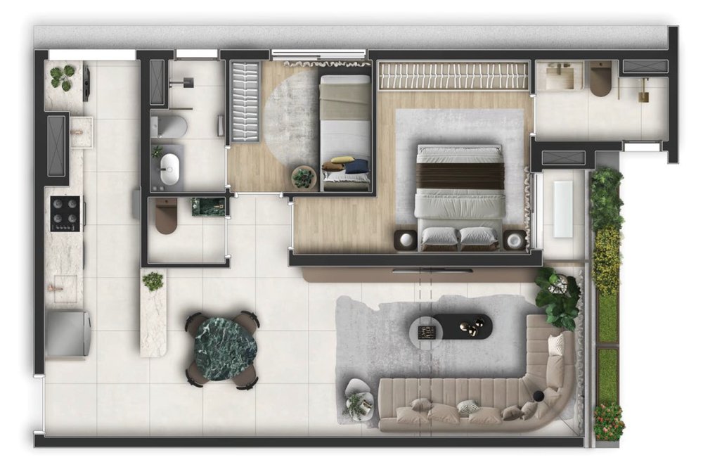 66 m² | 2 Suítes | 1 Vaga