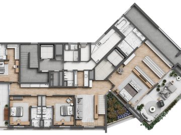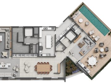 pensados para receber, brincar e se exercitar possuem uma curadoria de acabamentos e mobiliário atemporais para que sejam