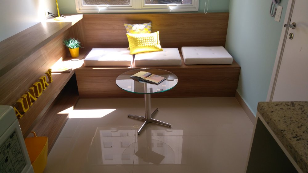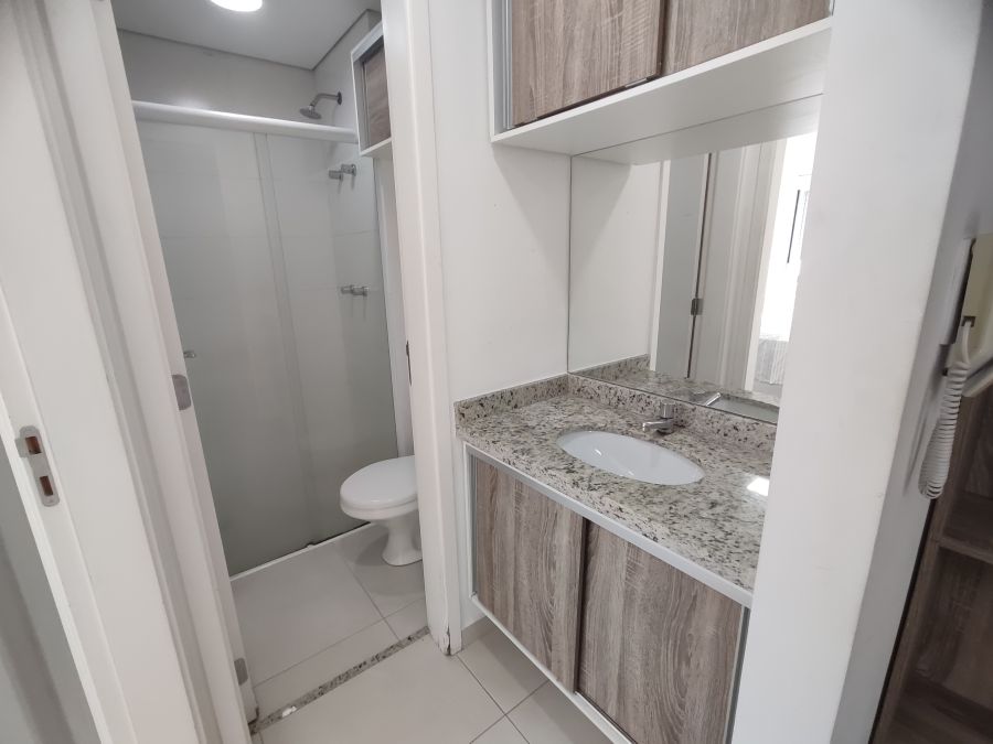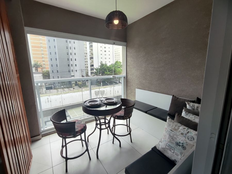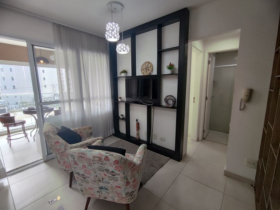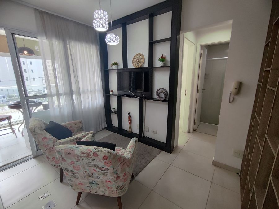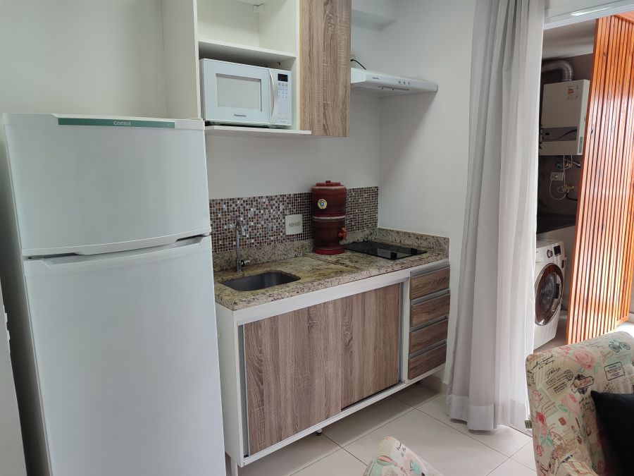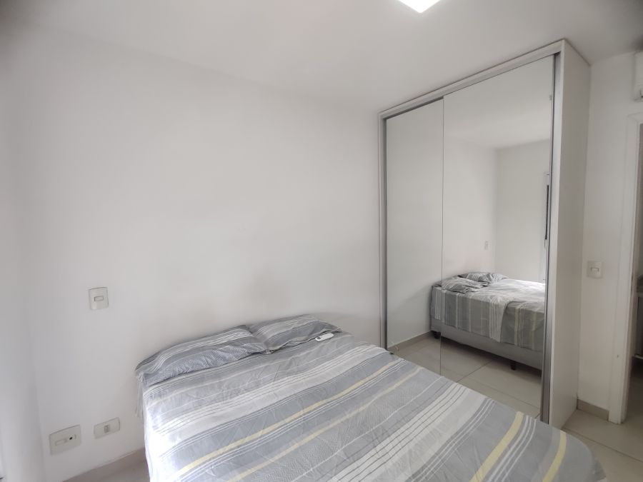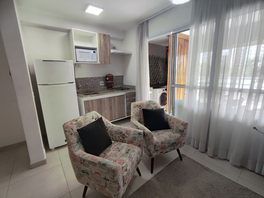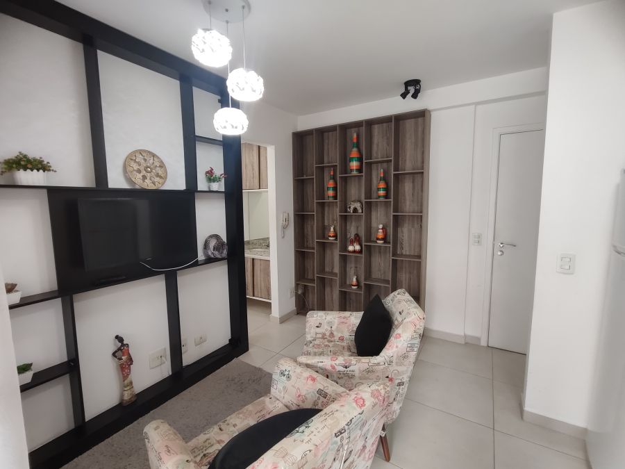 Apartamento mobiliado com 1 dormitório + 1 vaga. A unidade possui de 35,74m² com piso em porcelanato e ar condicionado instalado, espaço muito bem aproveitado, além disso tudo as janelas possuem dimensões especiais proporcionando muita luminosidade para o seu apartamento, você vai se surpreender. Apartamento pronto para entrar, com armários, geladeira, fogão, TV, máquina de lavar (caso você não queira utilizar a lavanderia coletiva), cama, micro-ondas, mesa, cadeiras, etc., só entrar.
