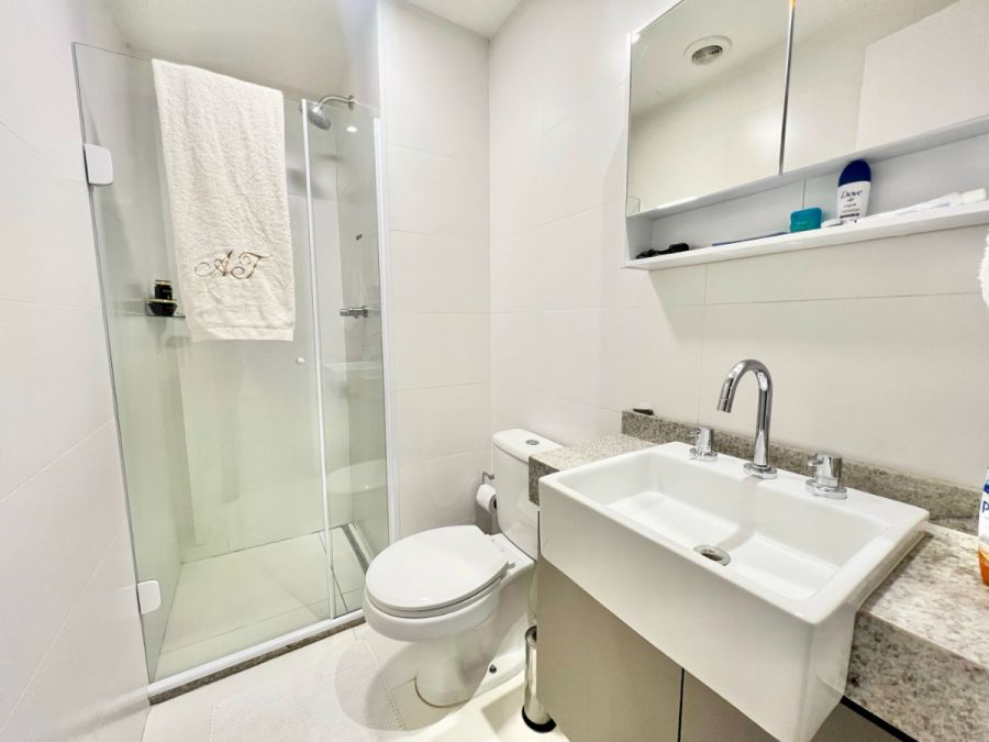A planta original conta com 2 dormitórios, porém atualmente está configurada com 1 suíte, sala ampliada, cozinha americana, móveis planejados e varanda gourmet fechada com vidro.