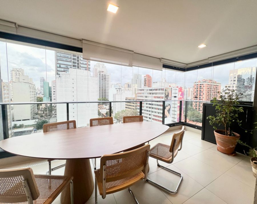 Apartamento em andar alto, localizado a 150 metros da estação Fradique Coutinho do metrô.