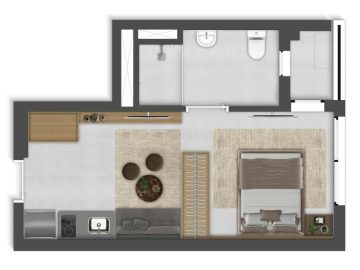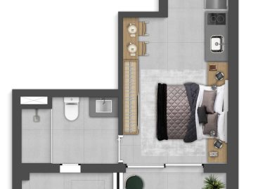 Studios funcionais, com lazer exclusivo, que combinam perfeitamente com a vibração do bairro.
