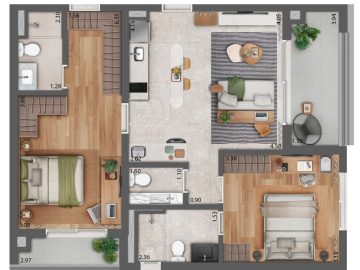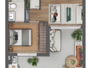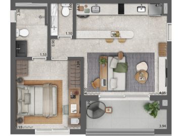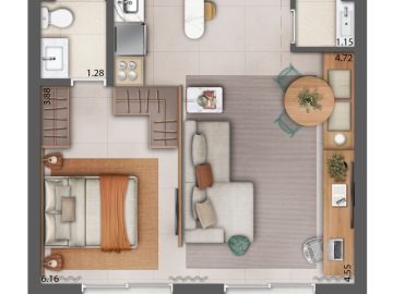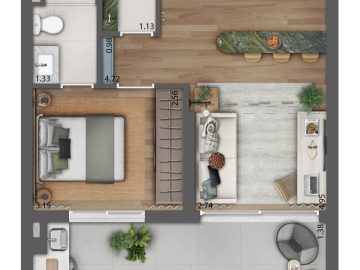 1 Suíte - 47m² - 10 unidades - 1 vaga