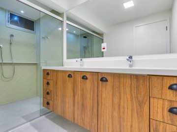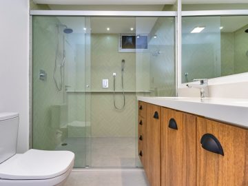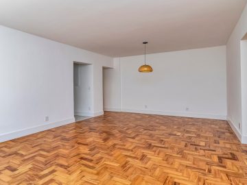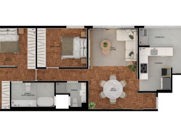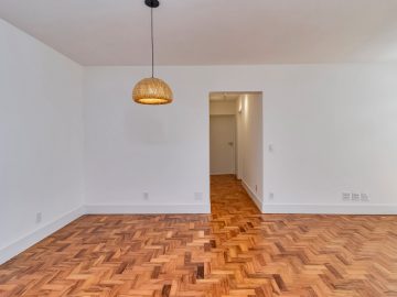 Bem distribuído em seus 98,63m², o apartamento ganhou uma ampla suíte, resultado da junção de dois quartos. Há ainda um segundo dormitório com banheiro social exclusivo, garantindo conforto e privacidade.