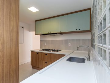 A escolha dos revestimentos e acabamentos traz um toque de modernidade e sofisticação a cada ambiente. A cozinha, de formato quadrado e repleta de armários, é perfeita para quem ama cozinhar!