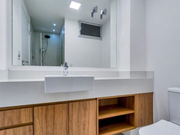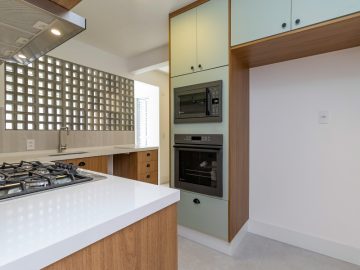 O apartamento será entregue com marcenaria planejada (cozinha, área de serviço e banheiros), aquecedor a gás, cooktop, coifa e forno.