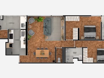 **Apto será entregue com marcenaria (cozinha, área de serviço e gabinetes dos banheiros), cooktop, coifa, forno elétrico e aquecedor à gás.
