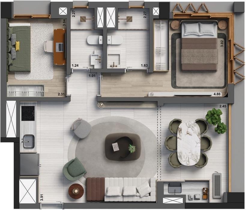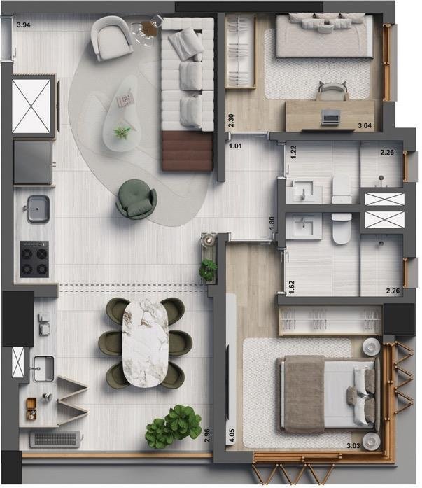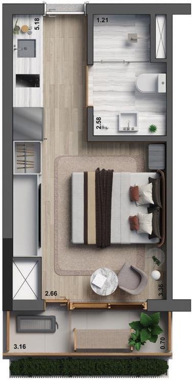 Studios Residenciais: De 25 m² a 54 m², perfeitos para quem busca praticidade e estilo.