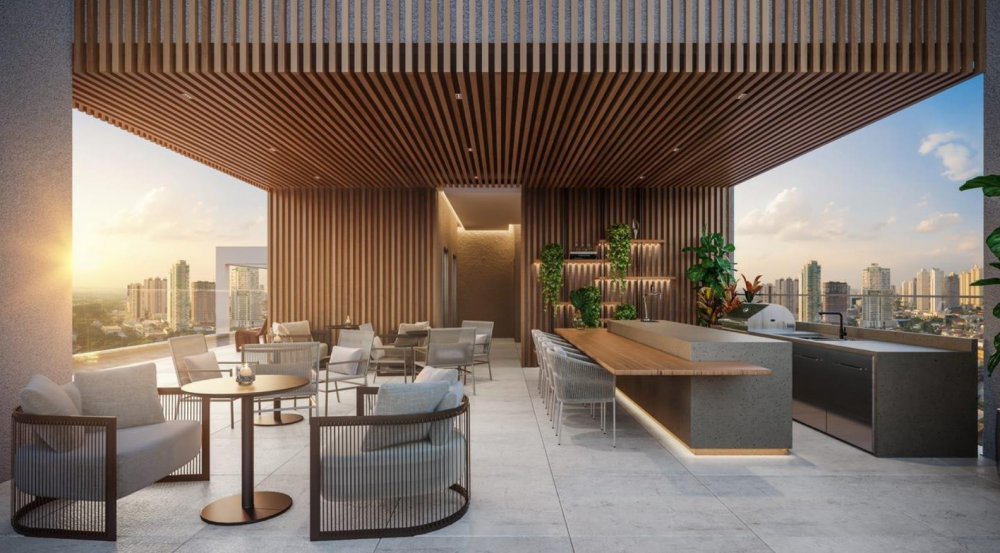 21° Pavimento: Piscina Infantil, Piscina Adulto com Raia de 25 metros, Hidromassagem e Lounge Gourmet para os momentos de diversão e descontração.