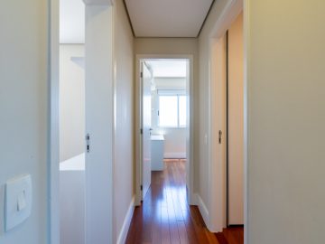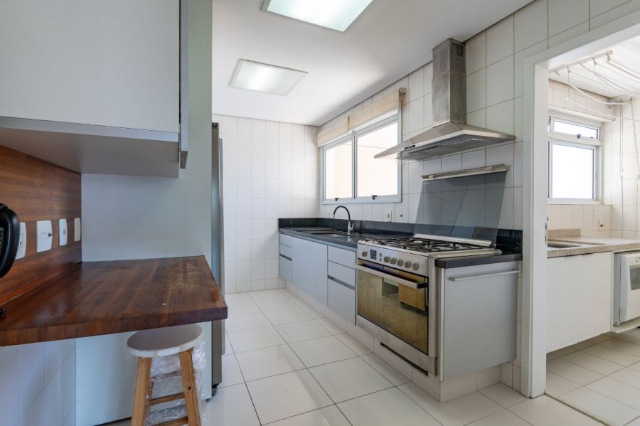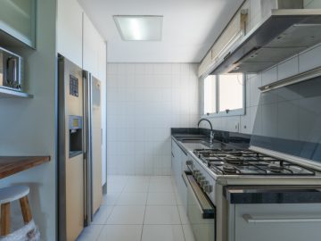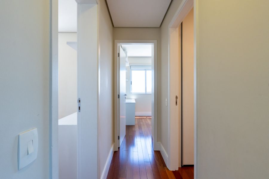 Este imóvel impressiona pelo equilíbrio entre conforto, elegância e praticidade. Possui banheiro e quarto de serviço, lavanderia espaçosa, aquecimento a gás e cozinha completa com armários planejados de alta qualidade. O forro de gesso em todos os ambientes proporciona um acabamento refinado, enquanto o piso de madeira maciça na sala e nos dormitórios traz aconchego e sofisticação.
