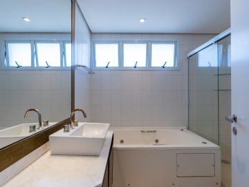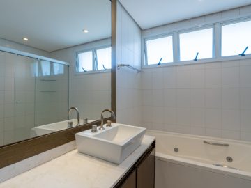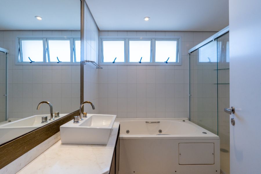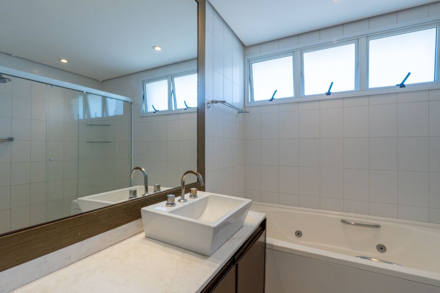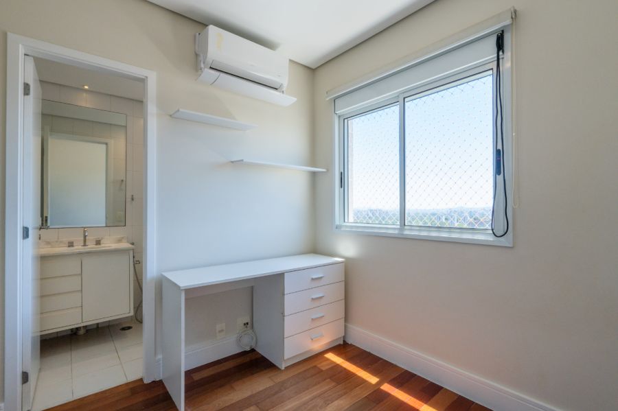 A área íntima conta com 4 dormitórios, sendo 3 suítes, incluindo uma suíte master ampla com closet e banheiro com banheira de hidromassagem, perfeita para momentos de relaxamento. O imóvel ainda oferece 4 banheiros completos + 1 banheiro de serviço + lavabo, garantindo praticidade para toda a família e visitas.
