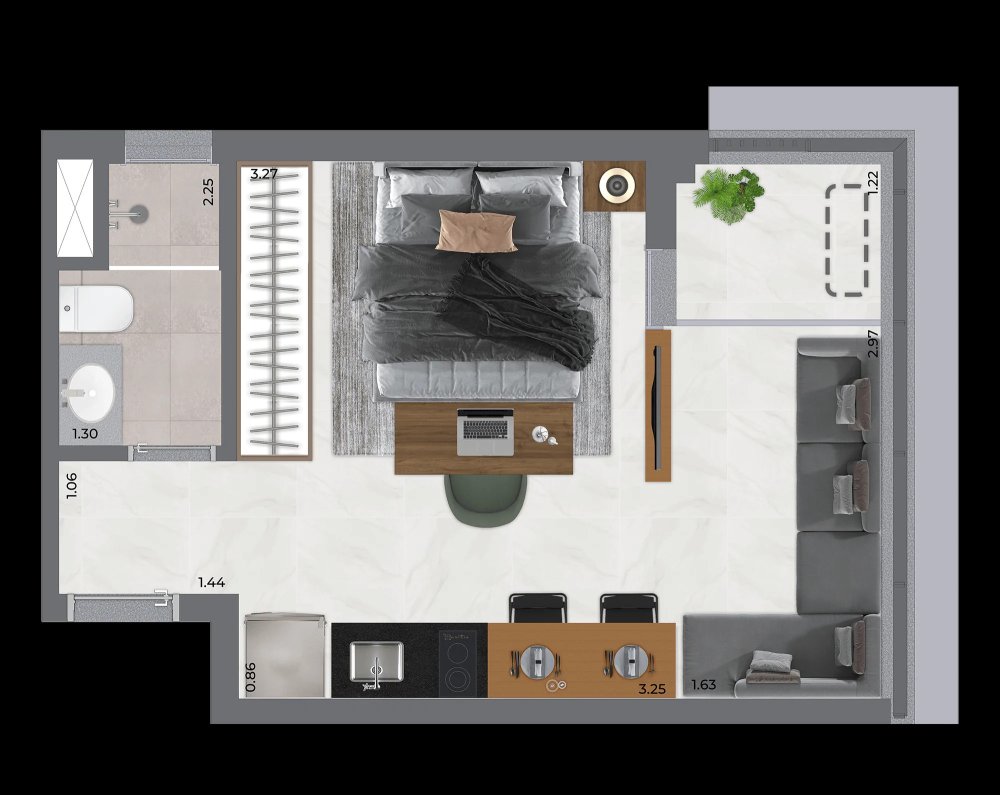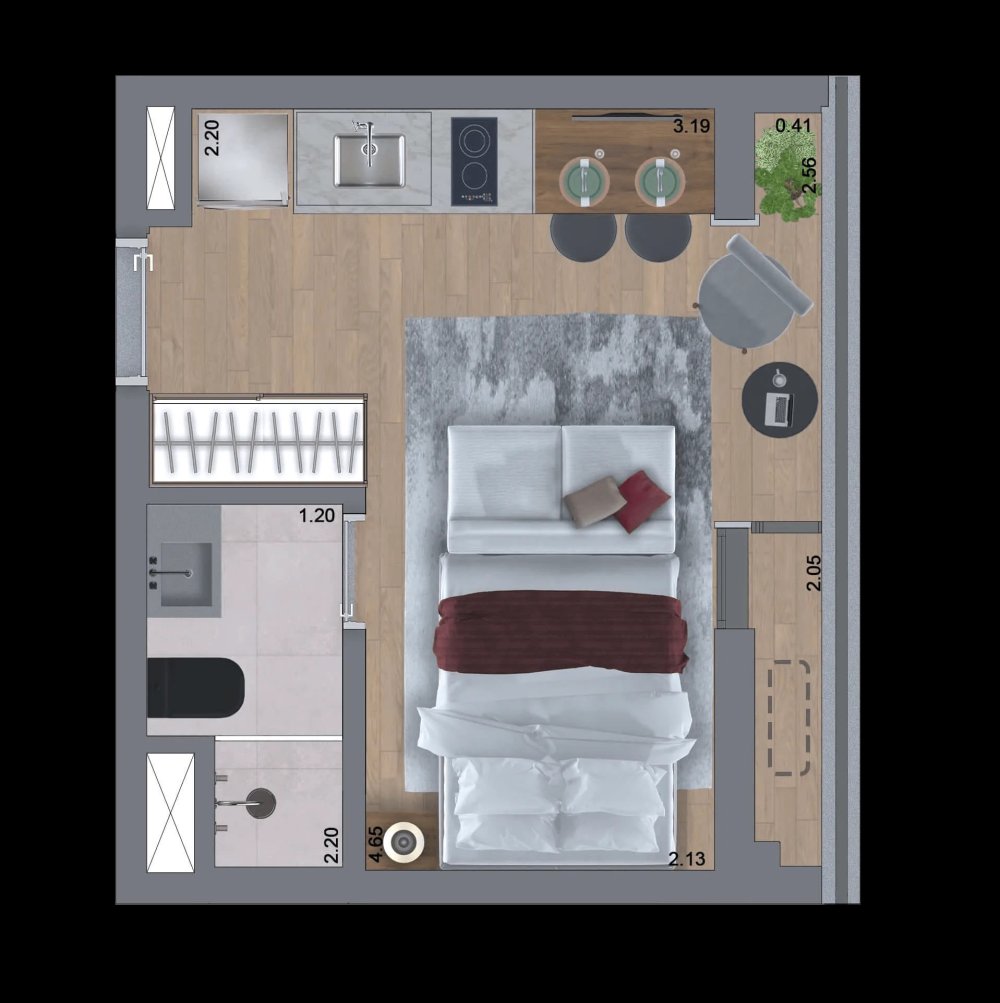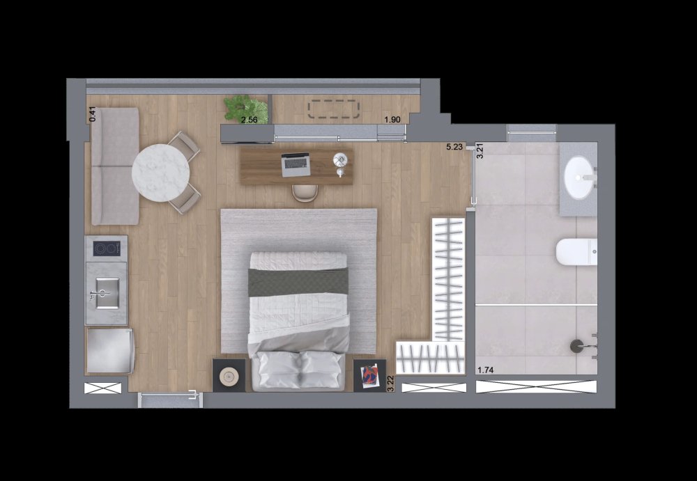 - Área Privativa: 22,10 m²