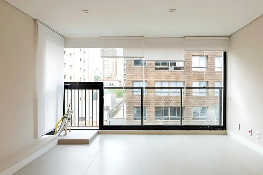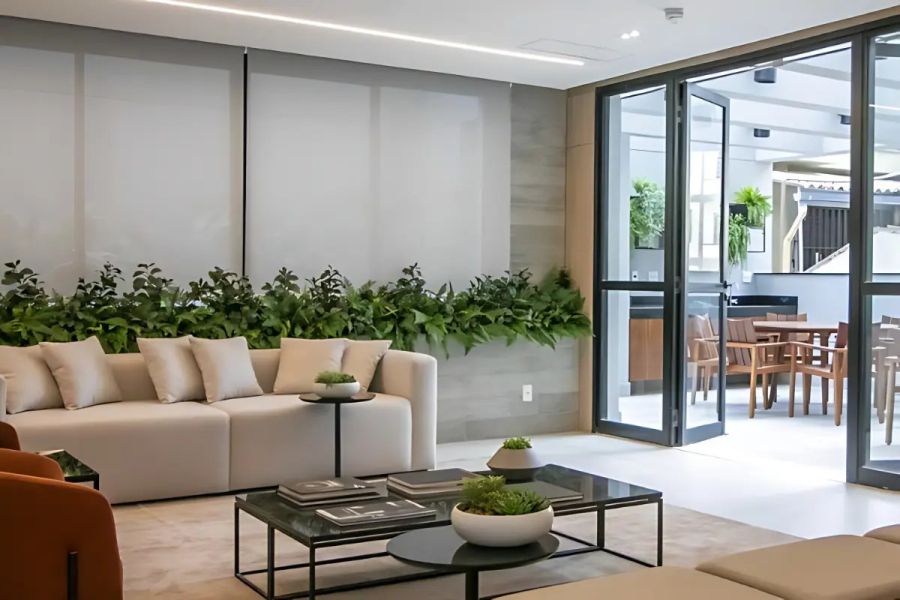 Living conectado a uma sacada, ideal para receber e desfrutar de momentos de lazer.