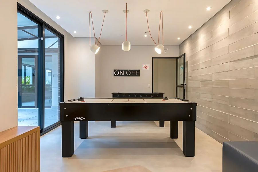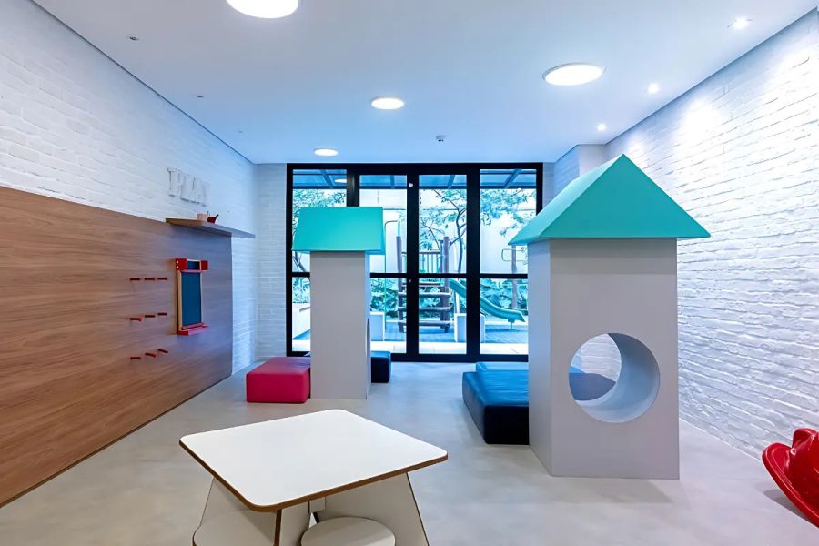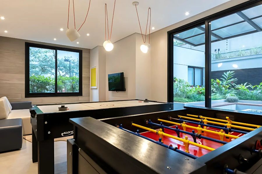 O edifício dispõe de uma infraestrutura completa de lazer: piscina com raia, academia moderna, salão de festas, churrasqueira, sala de jogos, brinquedoteca e portaria física 24 horas.