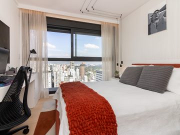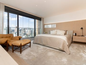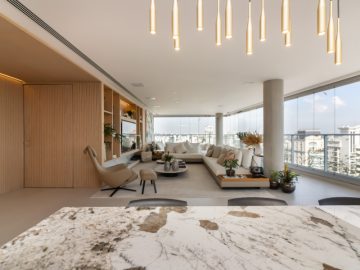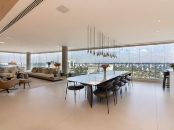 Com uma ampla área de 268 metros quadrados, este apartamento inteligente é composto por 16 cômodos bem planejados, incluindo 4 quartos espaçosos e 6 banheiros luxuosos. A propriedade destaca-se pelo design de interiores elegante com ambientes integrados e propostas inovadoras como o aquecimento no piso e o chuveiro a gás.