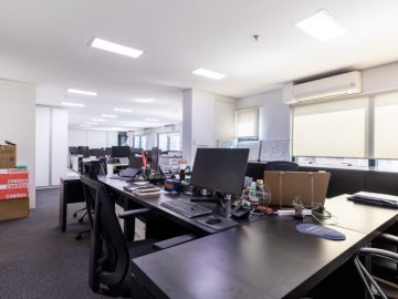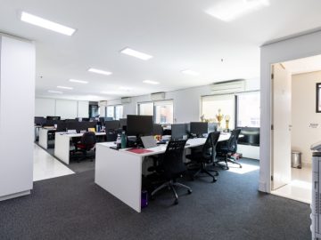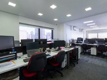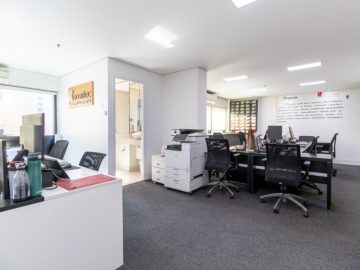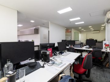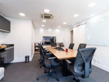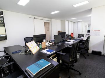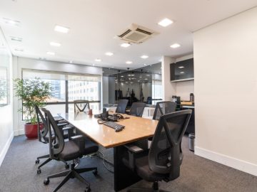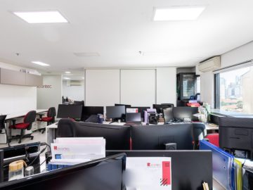 Para maior praticidade no dia a dia, a sala dispõe de uma copa bem equipada, ideal para refeições rápidas e momentos de descontração entre os colaboradores. O layout do espaço é versátil e permite a fácil adaptação de baias e estações de trabalho, garantindo um ambiente organizado e eficiente para sua equipe.