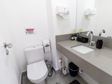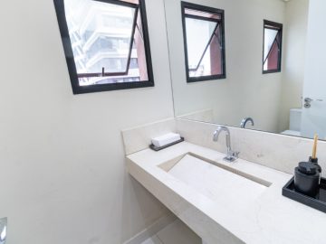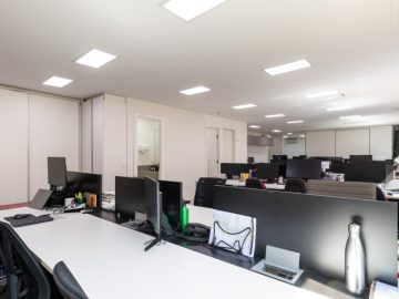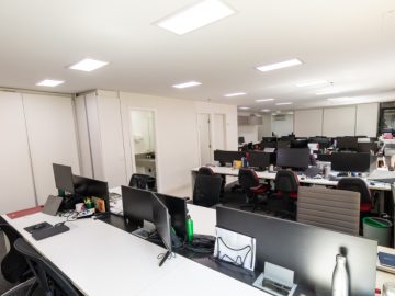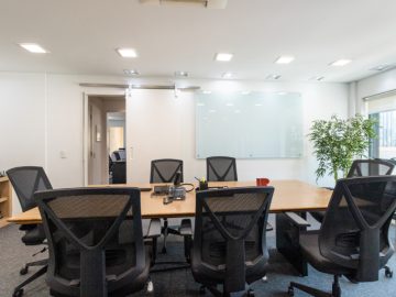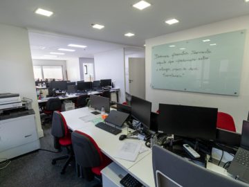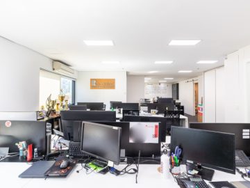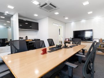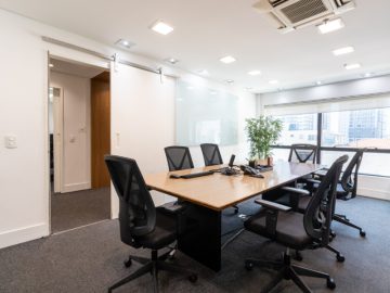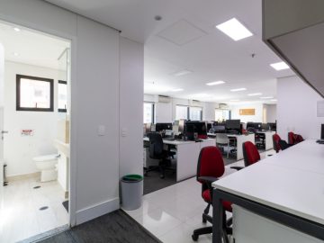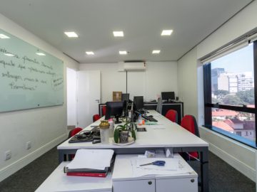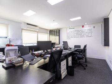 O imóvel conta com seis banheiros, proporcionando comodidade para equipes de diferentes tamanhos. Além disso, há uma sala de reunião estrategicamente posicionada, que oferece uma vista privilegiada e excelente iluminação natural, tornando os encontros mais produtivos e agradáveis.