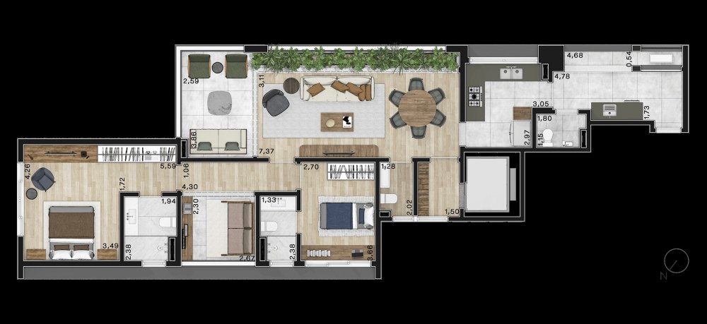 - Área Privativa: 194,78 m²