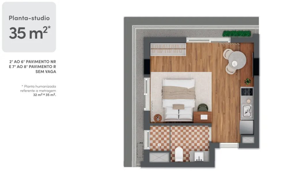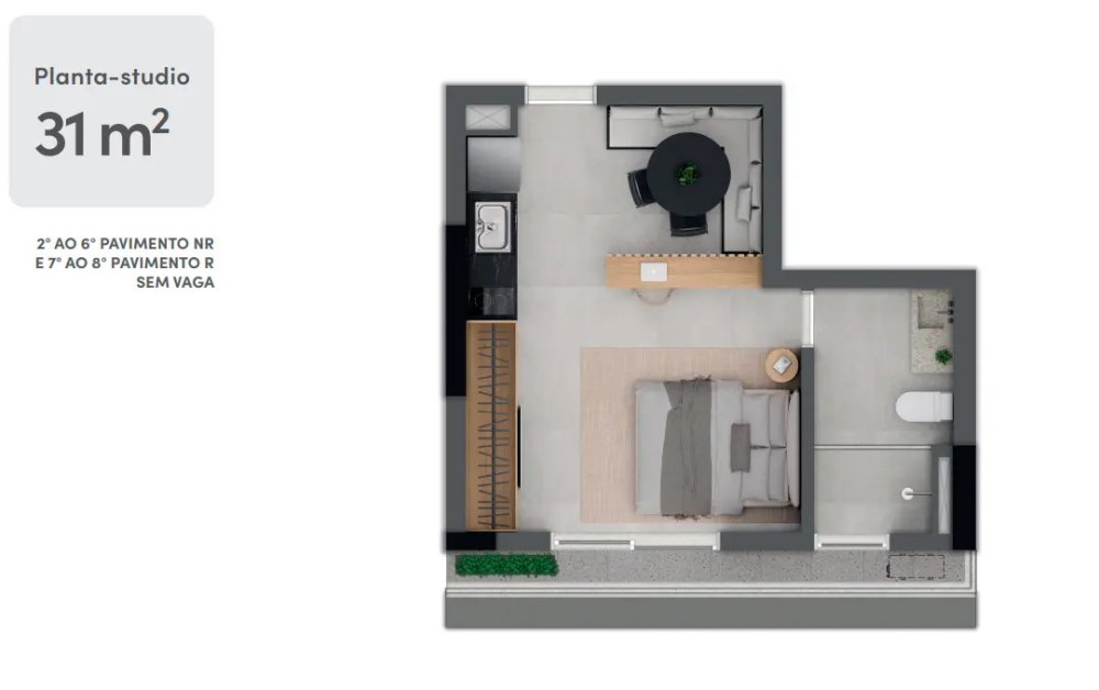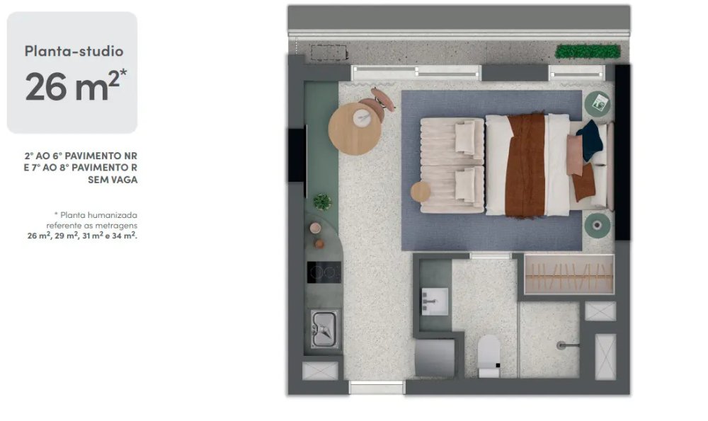 Setor Studios - 2° ao 8° pavimento - 56 Studios sem vaga